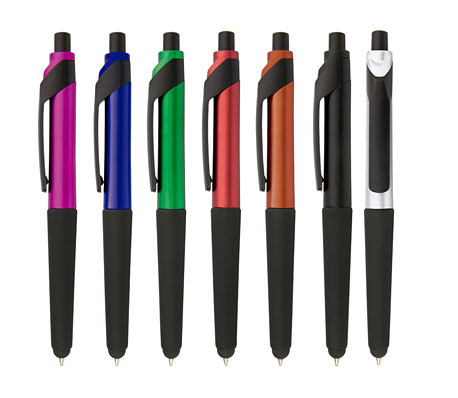 Bolígrafo plástico con sistema de apertura retráctil y touch para dispositivos con pantallas táctiles.