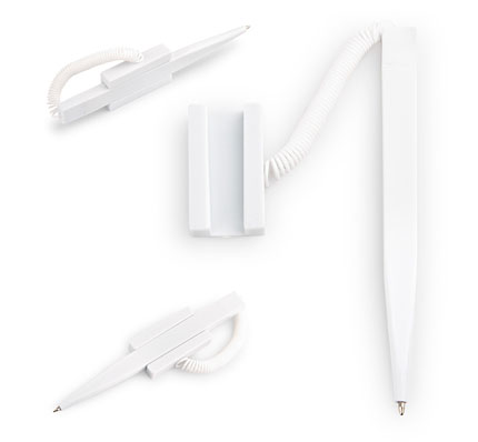 Bolígrafo con base adherente y cable resortado que facilita su uso. ideal para mesas, escritorios, etc
