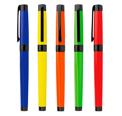 Bolígrafo metálico tipo Roller en colores intensos, mina metálica delgada.