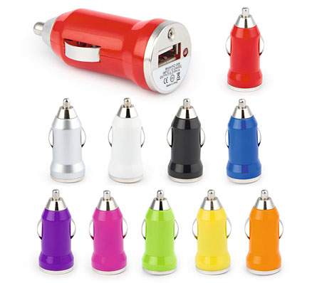 Cargador USB de carro para celular. Apto para cualquier encendedor de auto. Luz LED indicadora de carga. Voltaje de entrada 12-24 V.
