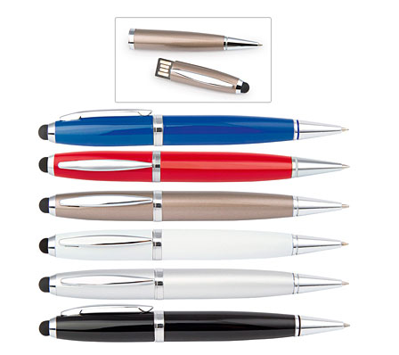 Disponible en 4GB, 8gb Y 16 GB Boligrafo con memoria USB de 4GB, sistema de apertura twist en la parte inferior, touch para dispositivos.